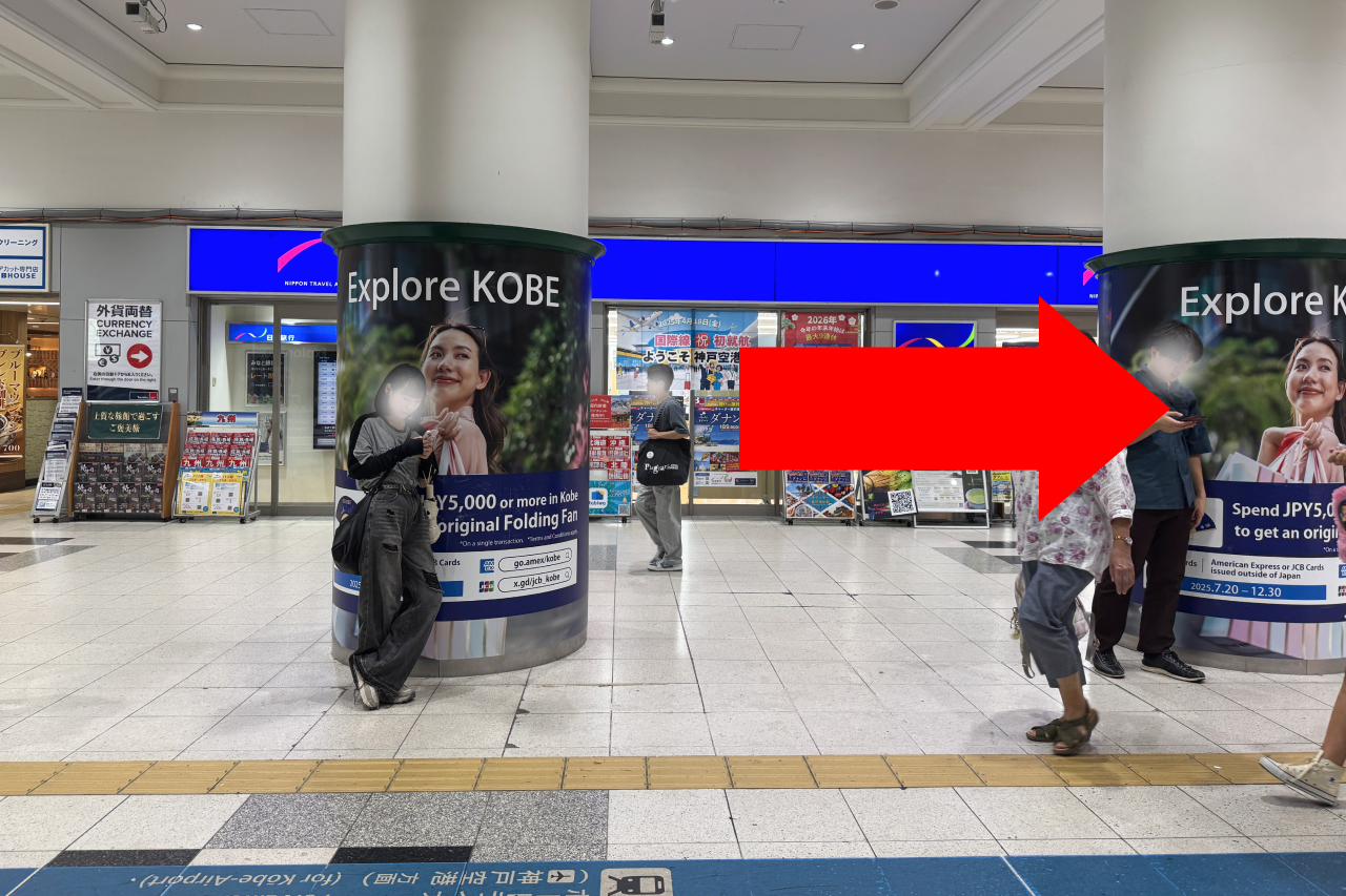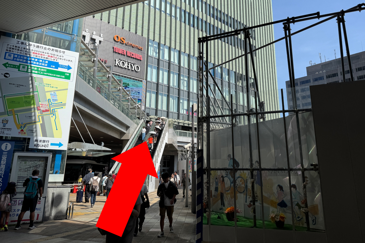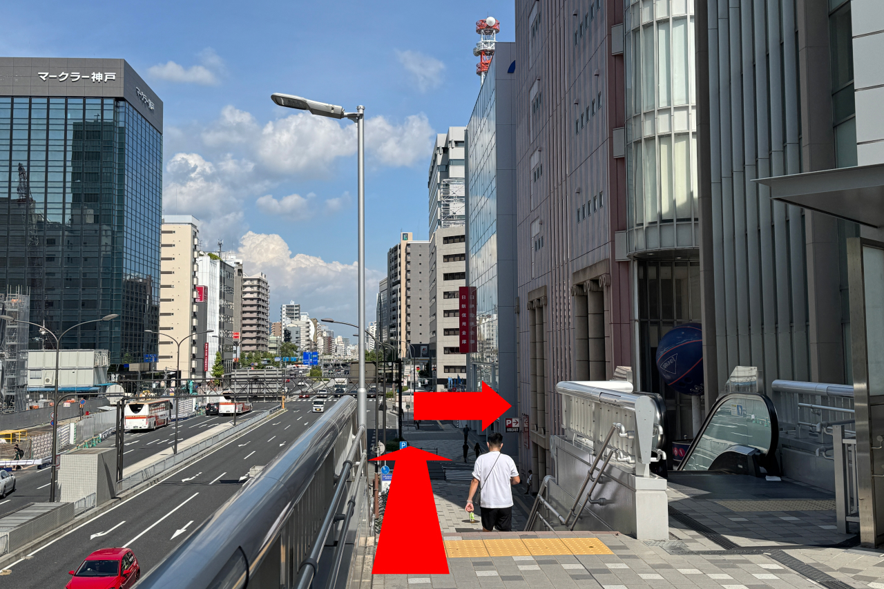 2階に上がり、ミント神戸を左に見ながら、右方向に進みます。