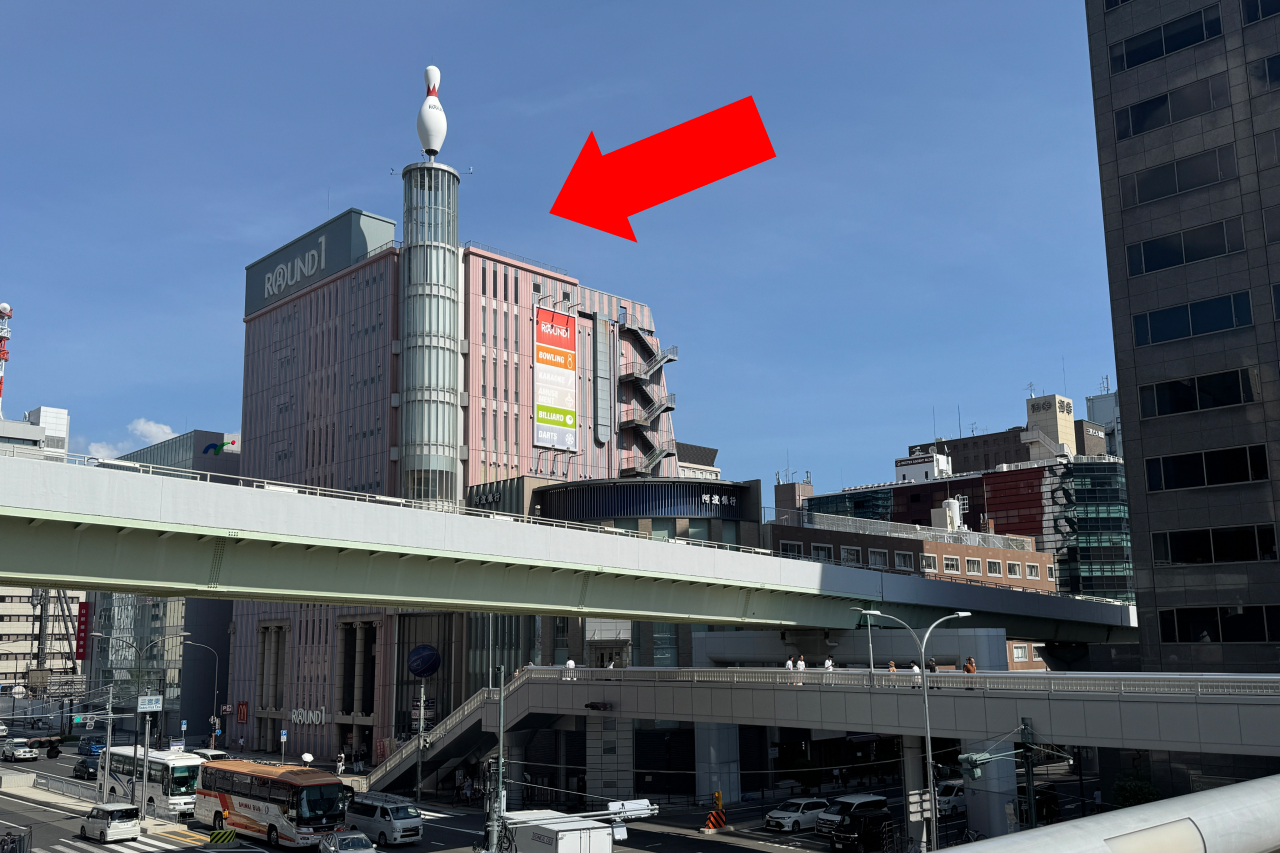 左手にラウンドワンが見えてきますので、そちらに向かって進みます。